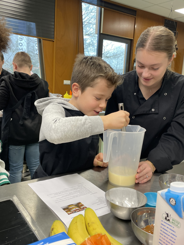 Passend bij ons thema 'Hollandse glorie' mochten wij een middag komen koken op Zone college. We zijn begeleid door vierdejaars studenten en hebben Hollandse hapjes leren maken. We hebben kaasstengels, appelflappen, saucijzenbroodjes, gehaktballen, pannenkoeken, gevulde eieren en een stoopwafel toetje gemaakt. Het was heerlijk!